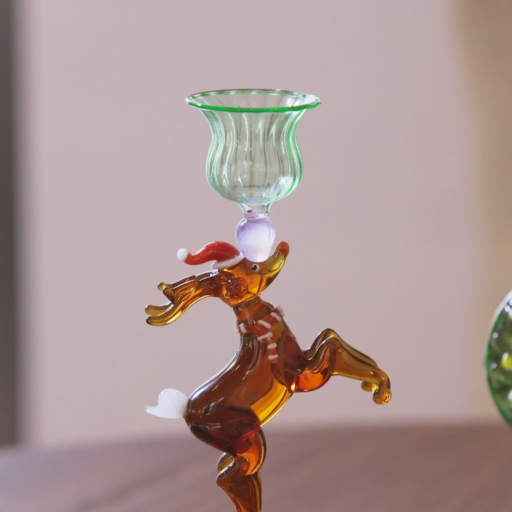 Reindeer hand-blown Glass candle holder